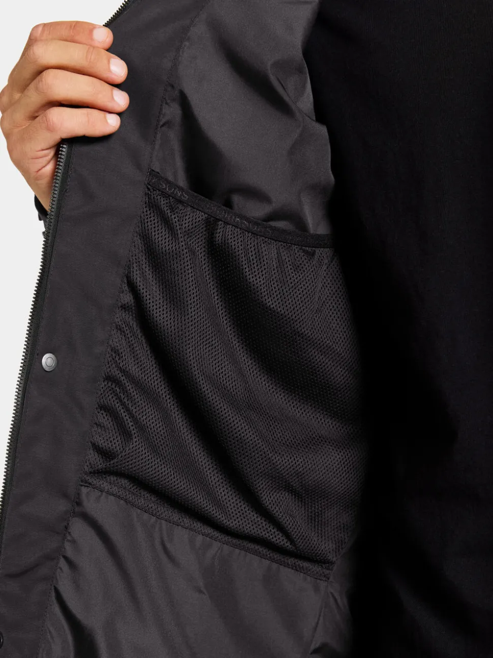 Parkassa on kaksisuuntainen etuvetoketju, joka takaa joustavuuden ja helpon tuuletuksen. Säädettävässä hupussa on etureunassa lanka, joka pitää hupun muodon, ja sitä voidaan säätää yhdellä kädellä optimaalisen istuvuuden saavuttamiseksi. Hihansuut ovat säädettävissä tarranauhalla, jotta kylmä pysyy poissa.