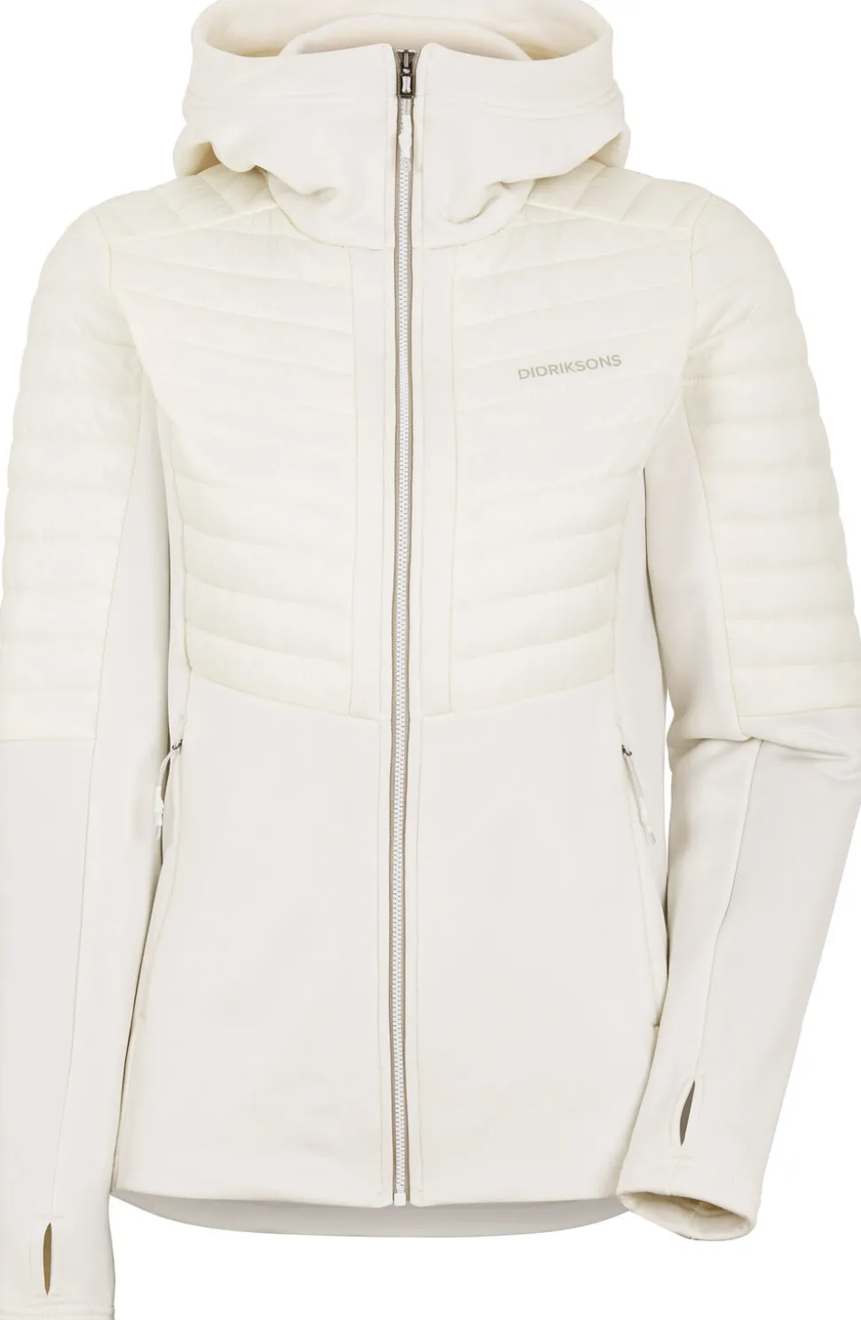 Kiinteä huppu ja hihansuissa olevat peukaloreiät antavat lisäsuojaa ja mukavuutta. Takissa on käytännöllinen vetoketjukiinnitys edessä ja vetoketjulliset etutaskut turvallista säilytystä varten. Materiaalissa on PFC-vapaa vettähylkivä viimeistely.