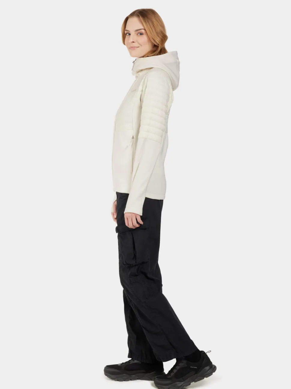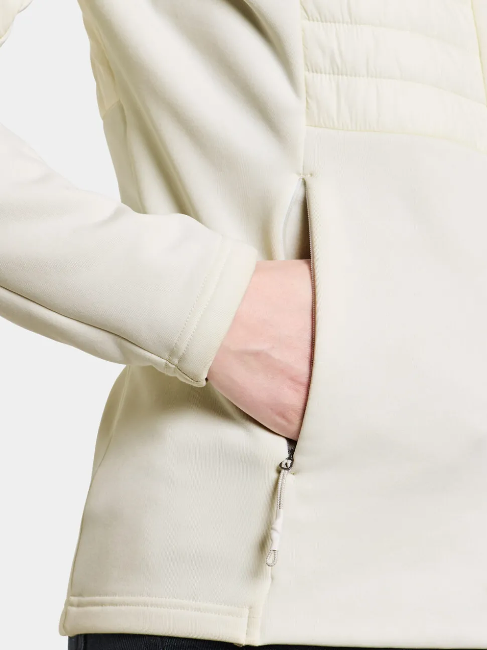 Annema on tyylikäs ja toimiva takki, jossa yhdistyvät kaksi eri materiaalia optimaalisen mukavuuden ja suorituskyvyn saavuttamiseksi. Takissa on imarteleva, vartaloa myötäilevä istuvuus ja ergonominen leikkaus, joka mahdollistaa liikkumisen vapauden. Takki on valmistettu kevyestä, vettähylkivästä ripstop-laatuisesta nylonista ja stretch-fleecestä, jonka harjattu sisäpinta antaa lisälämpöä.