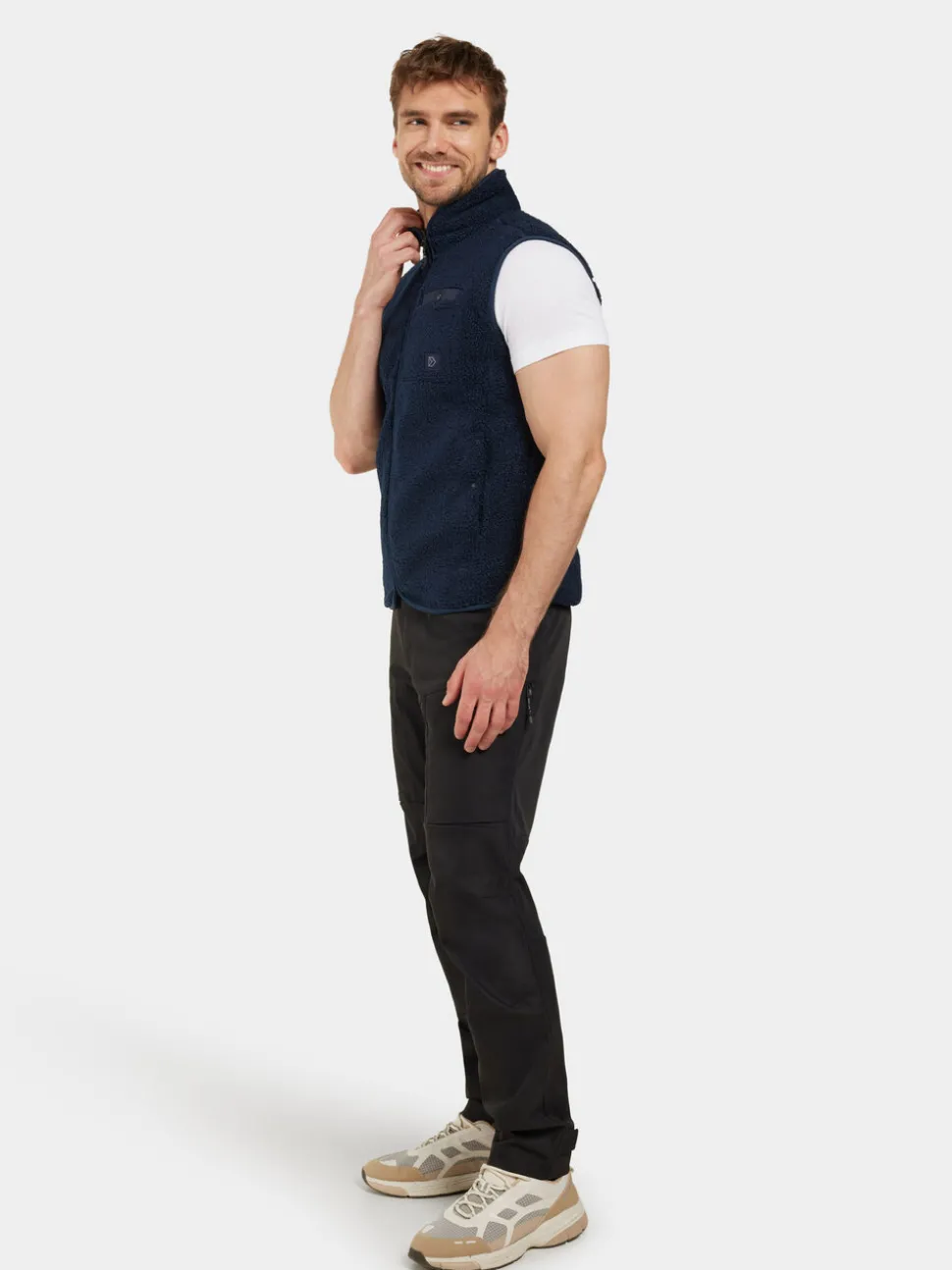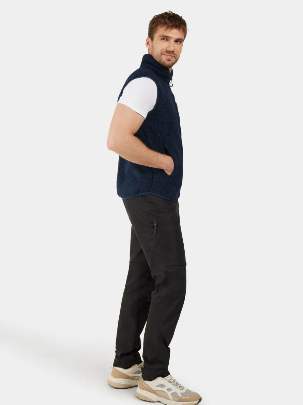 Pollux on lämmin ja pehmeä pileliivi, jossa on fleecepohja ja joka sopii täydellisesti kerrospukeutumiseen. Siinä on ohut istuvuus ja se on varustettu pystykauluksella lisälämmön saamiseksi. Liivissä on käytännölliset taskut, mukaan lukien rintatasku ja etutaskut, jotka sulkeutuvat napeilla. Kädentien ja helman ympärillä olevat joustavat reunukset takaavat mukavan istuvuuden. Edessä oleva vetoketjukiinnitys helpottaa pukemista ja riisumista.