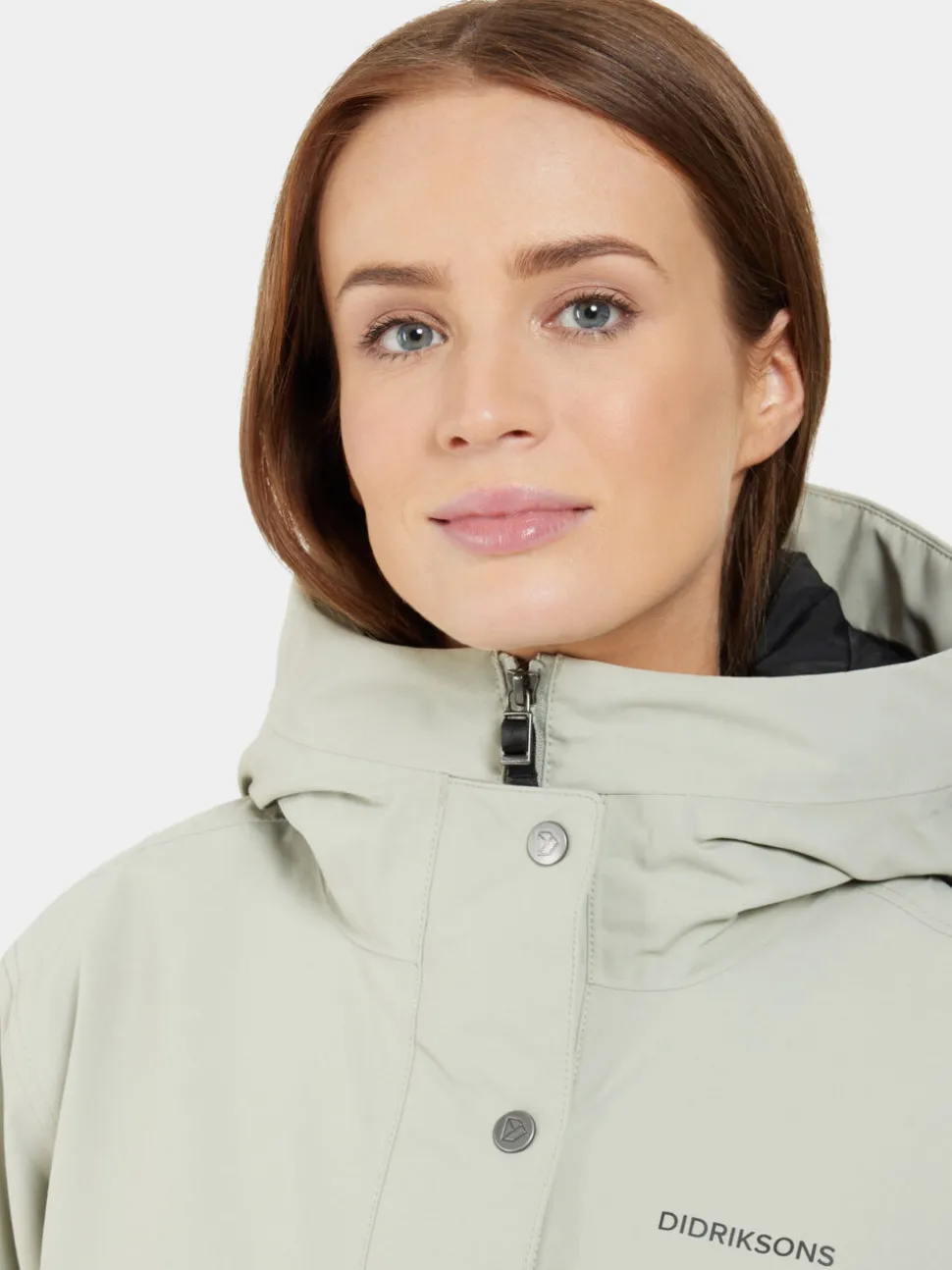 Mia-parka pitää sinut lämpimänä ja tyylikkäänä läpi syksyn ja talven kylmyyden. Rento istuvuus ja kaareva leikkaus antavat rennon tyylikkyyden ja mahdollisuuden kerrostamiseen. Huppu on helppo säätää, jotta se suojaa optimaalisesti säältä, ja vetoketju on pehmeä ja varustettu leukasuojalla hankautumisen estämiseksi. Taskut ovat käytännölliset ja pitävät tavarasi turvassa. Helma pitää kylmän loitolla, ja sitä voi helposti säätää henkilökohtaisen tyylin mukaan. Mia on parka, jossa yhdistyvät toiminnallisuus ja rento charmi.