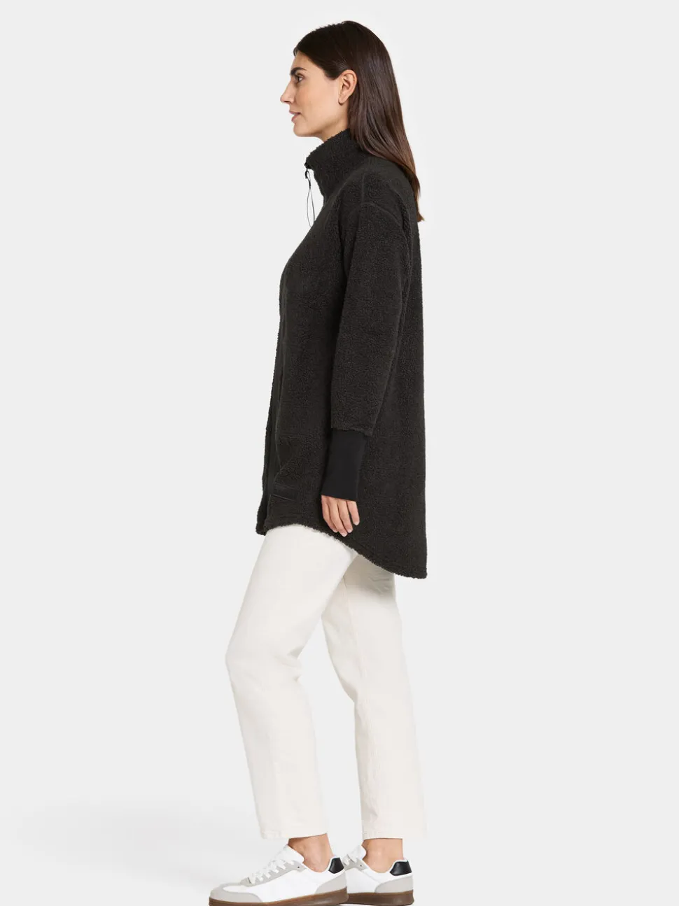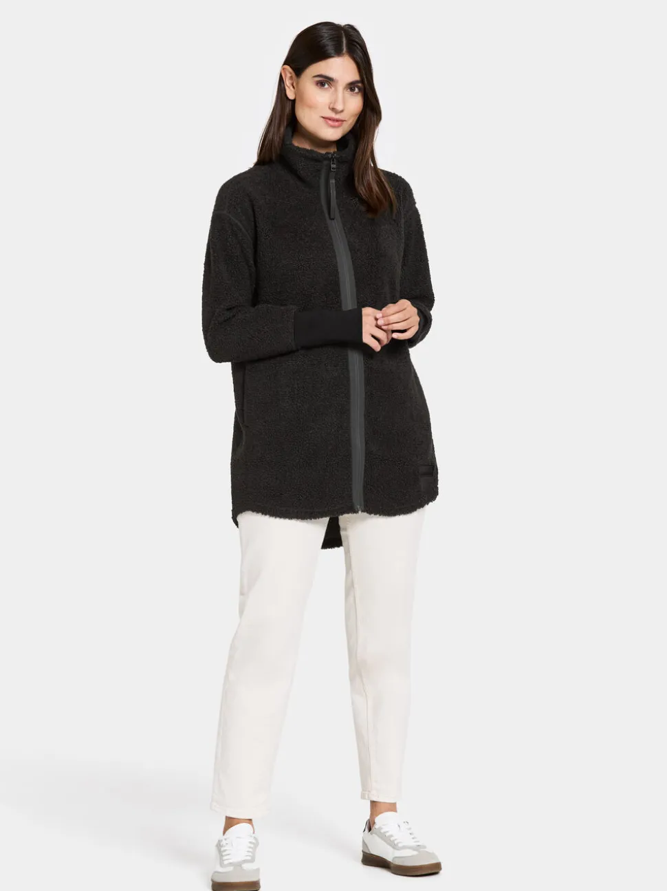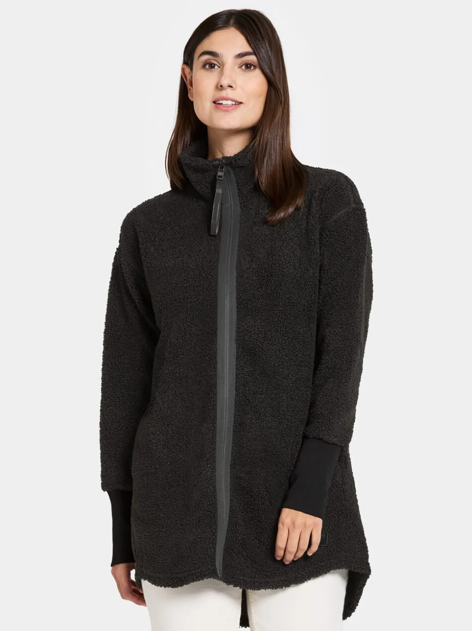 Tola on lämmin ja kodikas fleecetakki pehmeästä pilekankaasta, joka sopii täydellisesti kerrospukeutumiseen. Takissa on muotoiltu helma ja suora istuvuus, joka antaa rennon siluetin. Takissa on joustavat hihansuut ja tavallinen kaulus, joten se on sekä käytännöllinen että mukava. Sivutaskut ja vetoketjukiinnitys edessä tekevät siitä toimivan lisäyksen vaatekaappiisi. Tola on takki, joka antaa sinulle sekä mukavuutta että tyyliä arkeen.