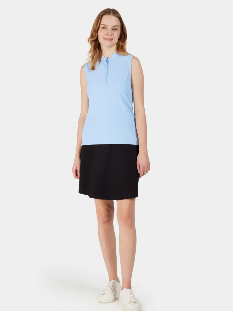 Nikki on klassinen hihaton pikee, jossa yhdistyvät täydellisesti tyyli ja mukavuus. Se on valmistettu pehmeästä ja miellyttävästä kankaasta, jossa on 4-suuntaista stretchiä, ja se antaa imartelevan, vartaloa myötäilevän siluetin. Joustava ribbikaulus ja nappikiinnitys edessä antavat ajattoman ilmeen, joka sopii kaikkiin tilaisuuksiin. Tämä 100-prosenttisesti kierrätyskuiduista valmistettu pikee on kestävä valinta vaatekaappiisi.