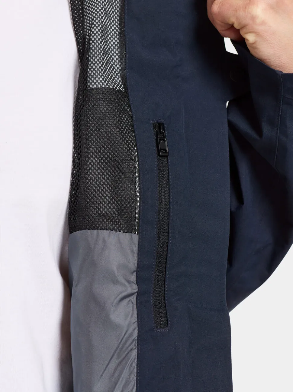 Grit on toiminnallinen takki, joka pitää sinut kuivana kaikissa ulkoiluseikkailuissasi. Se on täysin tuulenpitävä ja teipatuilla saumoilla varustettu, mikä takaa 100% vesitiiviin rakenteen. Takki on pehmeä ja joustava. Siinä on kaksi käsitaskua edessä ja piilotettu Napoleon-tasku. Tuuletusnappi on piilotettu etuvetoketjun taakse. Takissa on normaali istuvuus ja se on hieman pidempi takaa. Yhdistä Grit-housujen kanssa saadaksesi täydellisen sadeasukokonaisuuden. Vuori on värjätty Solution Dye -tekniikalla, joka säästää jopa 80% vettä verrattuna perinteisesti värjättyyn polyesteri-/polyamidikankaaseen. PFC-vapaa vettähylkivä viimeistely.