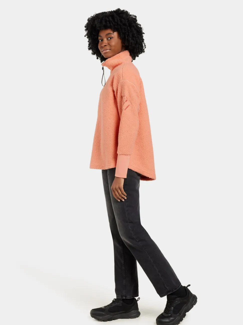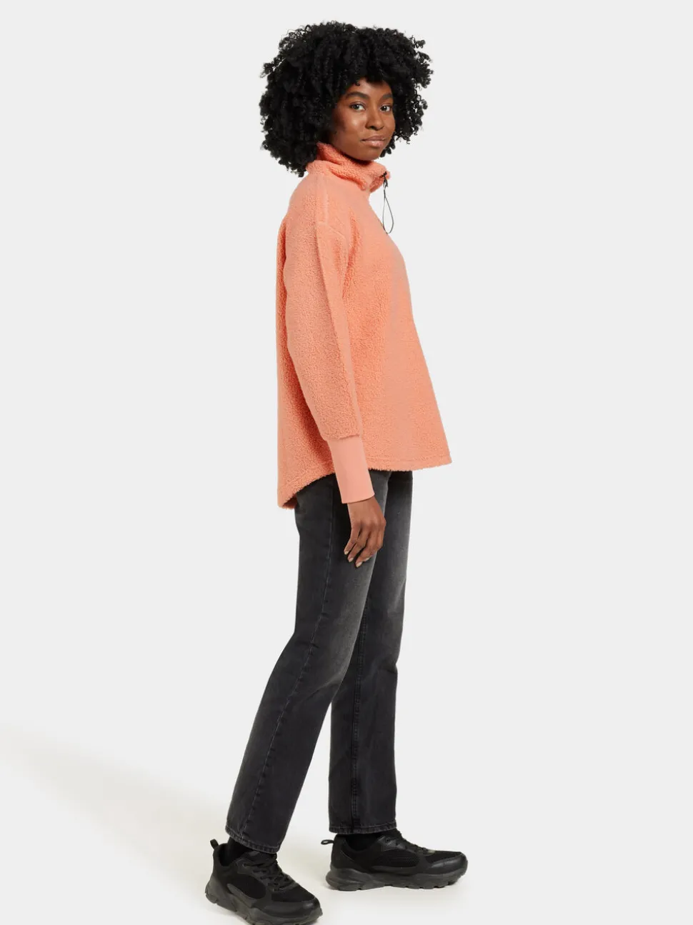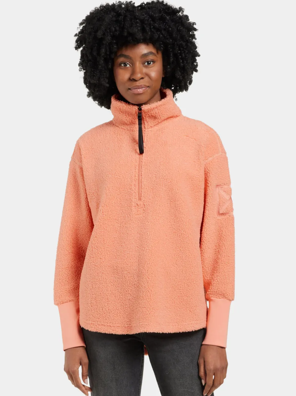 Monia on pehmeä ja miellyttävä pusero pilekankaasta, joka sopii täydellisesti kerrospukeutumiseen ulkoilun aikana. Siinä on puoliksi vetoketju, jossa on leukasuoja lisämukavuutta varten, ja joustavat hihansuut, jotka pitävät lämmön sisällä. Sen 4-suuntainen stretch tarjoaa liikkumisen vapautta ja mukavan istuvuuden.