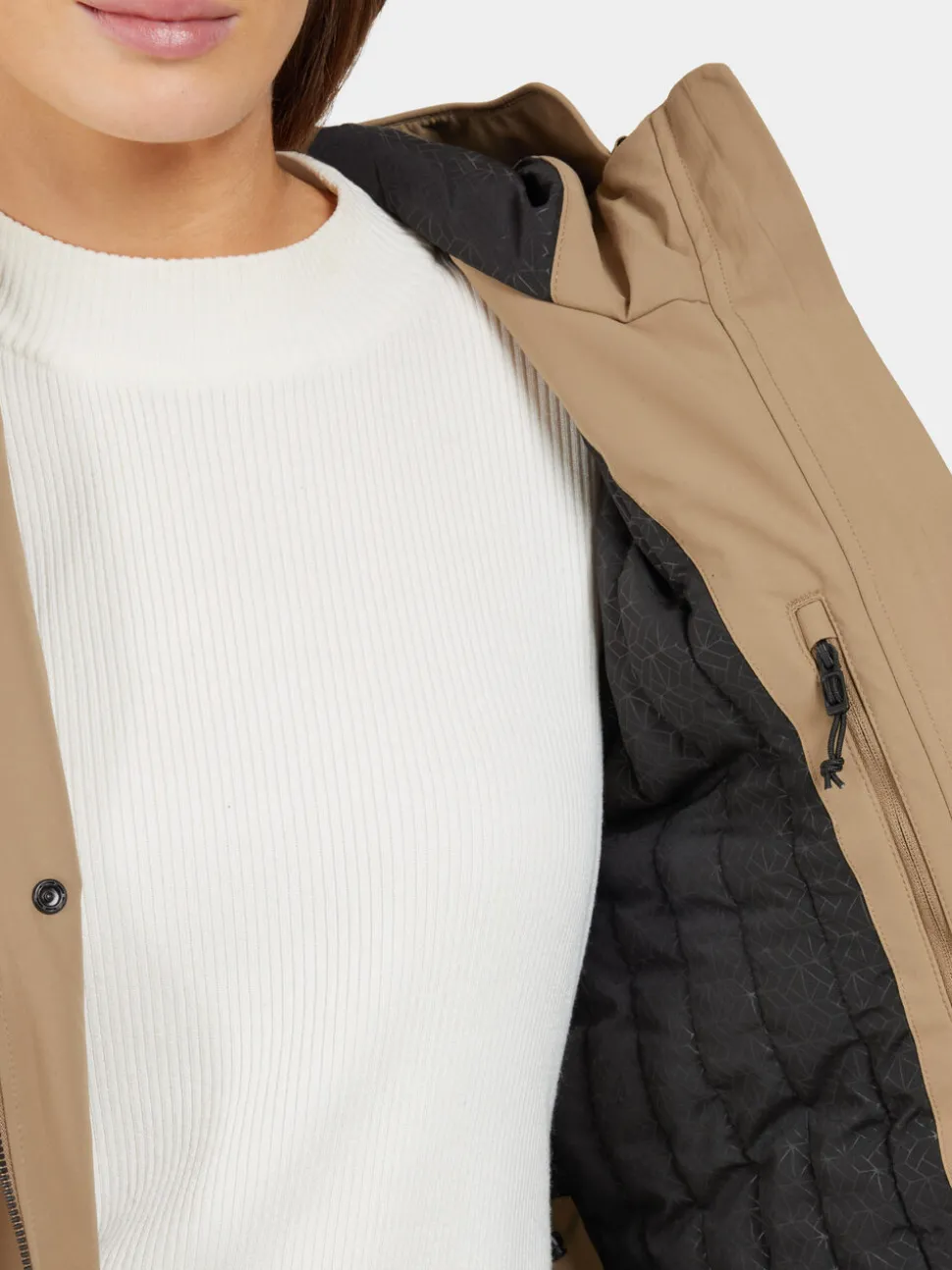 - Hood: Moulded peakHupun muotoiltu huippu tarjoaa lisäsuojaa säätä vastaan samalla tuoden tyylikästä ilmettä.