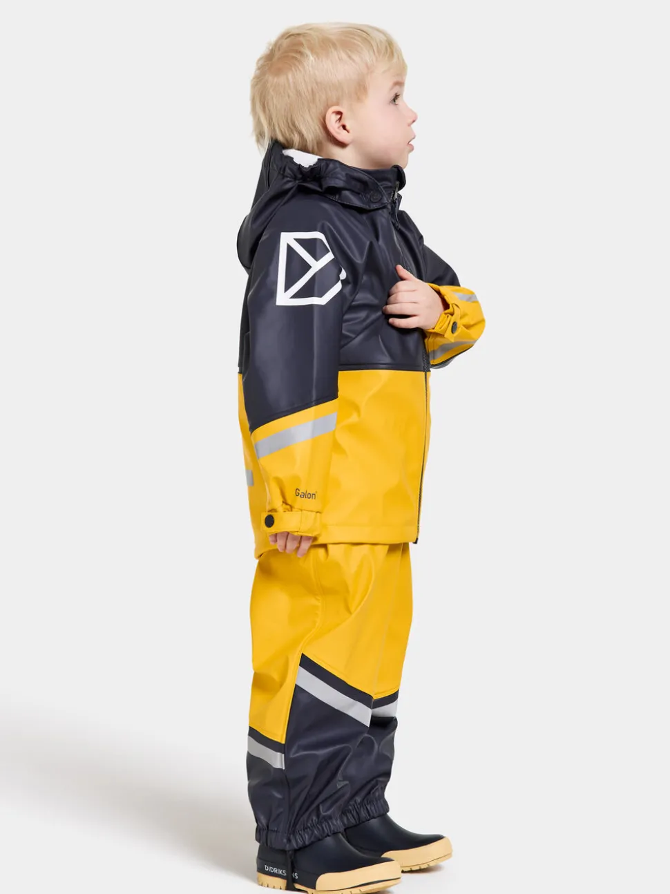 Waterman on täysin tuulen- ja vedenpitävä sadeasu hauskoihin ulkoilupäiviin. Se on valmistettu Galon®-materiaalista, ja siinä on hitsatut saumat. Sadetakissa on irrotettava painonapeilla varustettu huppu sekä näkyviä heijastavia yksityiskohtia selkämyksessä ja hihansuissa. Hihansuut ovat painonapeilla säädettävät ja takissa on vetoketju edessä. Kauluksen sisäpuolella on pehmeä fleecevuori. Sadehousut ovat malliltaan korkeat ja niissä on säädettävät henkselit ja painonapit sivuilla. Lahkeissa on heijastavia yksityiskohtia. Lahkeensuut ovat joustavat ja niissä on säädettävät ja vaihdettavat jalkalenkit.