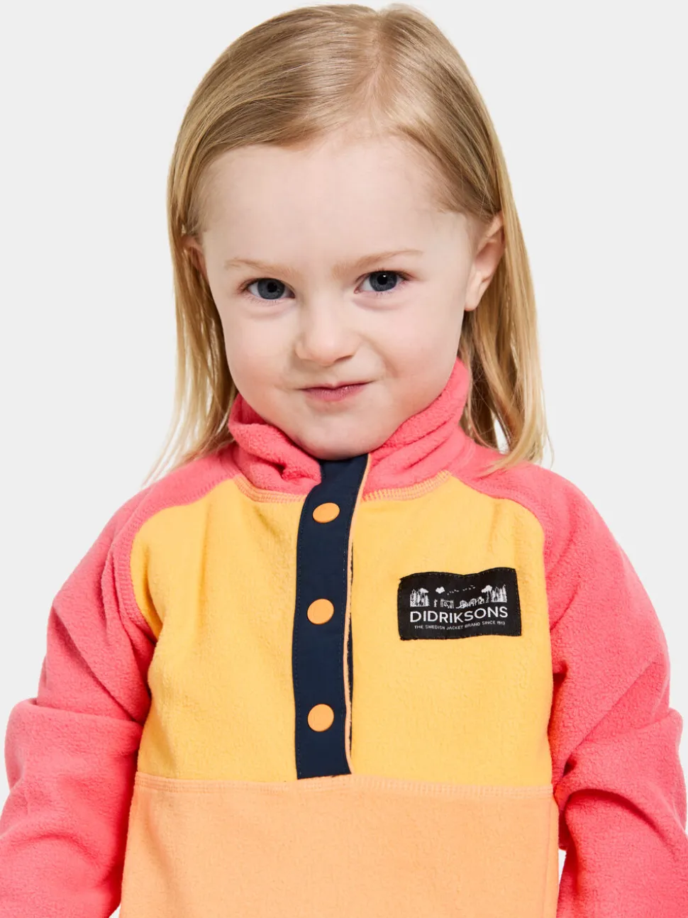Monte on mukava välikerrosvaate, joka on suunniteltu tarjoamaan lisää liikkuvuutta ja leikkimahdollisuuksia. Pusero on valmistettu termisestä mikrofleecestä, joka takaa mukavan lämmön. Sitä voidaan käyttää sisällä tai ulkona vuodenajan ja lämpötilan mukaan. Edessä on neljä nappia.