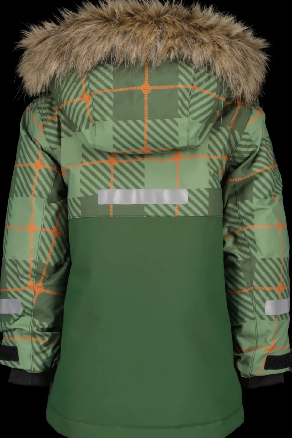 Polar Bear on parka, joka erottuu talvimaisemassa leikkisällä kuviollaan. Se pitää lapsesi lämpimänä ja suojattuna kylminä talvipäivinä. Parka on mukautuva, joten vaate kasvaa lapsen kasvaessa, mikä takaa mukavan istuvuuden ja liikkumisen vapauden. Pehmeä vuori ja irrotettava synteettinen turkis hupussa tarjoavat lisälämpöä ja suojaa. Heijastavat yksityiskohdat tekevät lapsestasi näkyvän myös pimeällä, ja käytännölliset taskut ja peukaloreiät tekevät Polarbjörnenista harkitun ja luotettavan talvitakin lapsesi jokaiseen seikkailuun.