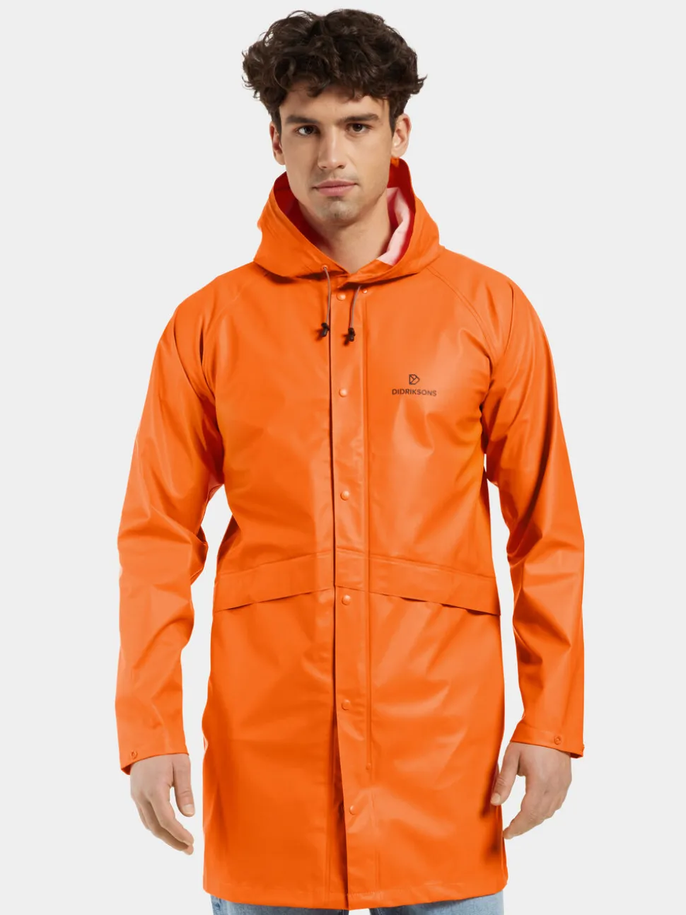 Etutaskut sulkeutuvat napeilla ja tarjoavat käytännöllisen säilytystilan. Hihansuut voidaan säätää napeilla optimaalisen istuvuuden varmistamiseksi. Parkassa on myös tuuletusaukko takana ilmankierron lisäämiseksi. Ulkokangas on valmistettu PVC-vapaasta Galon®:sta, jossa on hitsatut saumat 100 % vedenpitävää rakennetta varten.