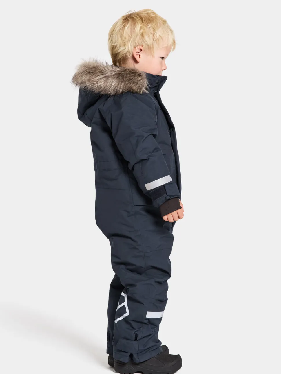 Björnen on lämmin ja mukavan tuntuinen haalari, joka on valmistettu tuulen- ja vedenpitävästä kankaasta. Se on hengittävä ja siinä on teipatut saumat. Tässä haalarissa on kaksi tilavaa etutaskua ja yksi pienempi rintatasku. Björnen-haalarissa on joka puolella heijastavia yksityiskohtia hyvän näkyvyyden varmistamiseksi. Huppu on säädettävä ja sekä huppu että sen tekoturkisreuna ovat irrotettavia. Haalarissa on vetoketju, jota peittää suojaava tuulilista keskellä edessä. Korkea kaulus, jossa on painonapit ja hihansuissa sisärannekkeet, joissa on peukaloaukot sekä lenkki käsineiden tai lapasten kiinnittämistä varten. Björnen-haalarissa on “Extend size” -toiminto, mikä tarkoittaa, että hihoja ja lahkeita voidaan pidentää yhdellä koolla. Vyötäröä, hihansuita ja lahkeensuita voidaan säätää optimaalisen istuvuuden saavuttamiseksi. Sisältää lumilukot ja vaihdettavat jalanaluslenkit. Haalarin eriste on valmistettu kokonaan kierrätetyistä kuiduista ja vuori on värjätty Solution Dye -tekniikalla. Se on värjäystekniikka, jolla säästetään jopa 80 % vettä verrattuna perinteisesti värjättyyn polyesteri/polyamidikankaaseen. Tummansinisen värin osalta myös kuorikangas on värjätty Solution Dye -tekniikalla. PFC-vapaa vedenhylkivyyskäsittely. Sisäpuolella on nimilappu, jossa on tilaa useille nimille.