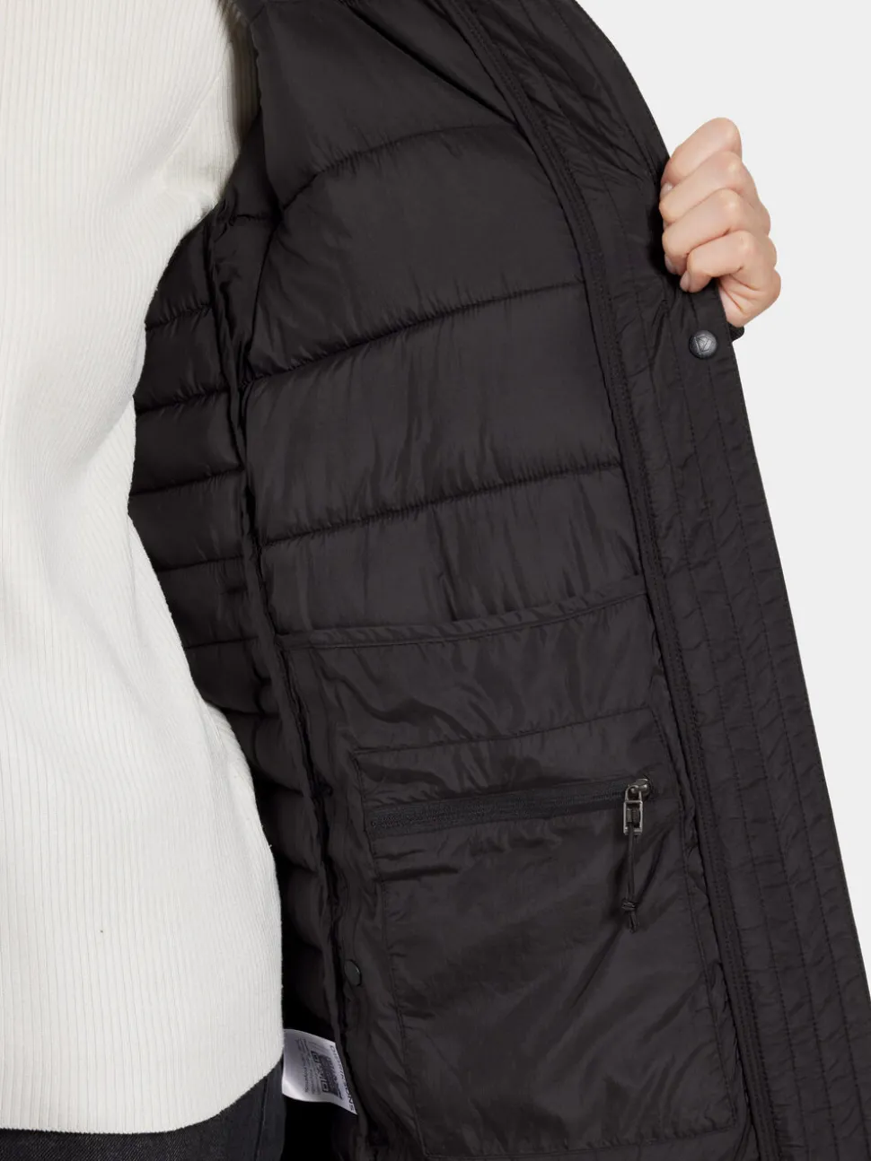 - Painonappi tuulilistan sisäpuolella tuuletusta vartenPainonappi pitää vaatteen paikallaan vetoketjun ollessa auki tuuletusta varten.