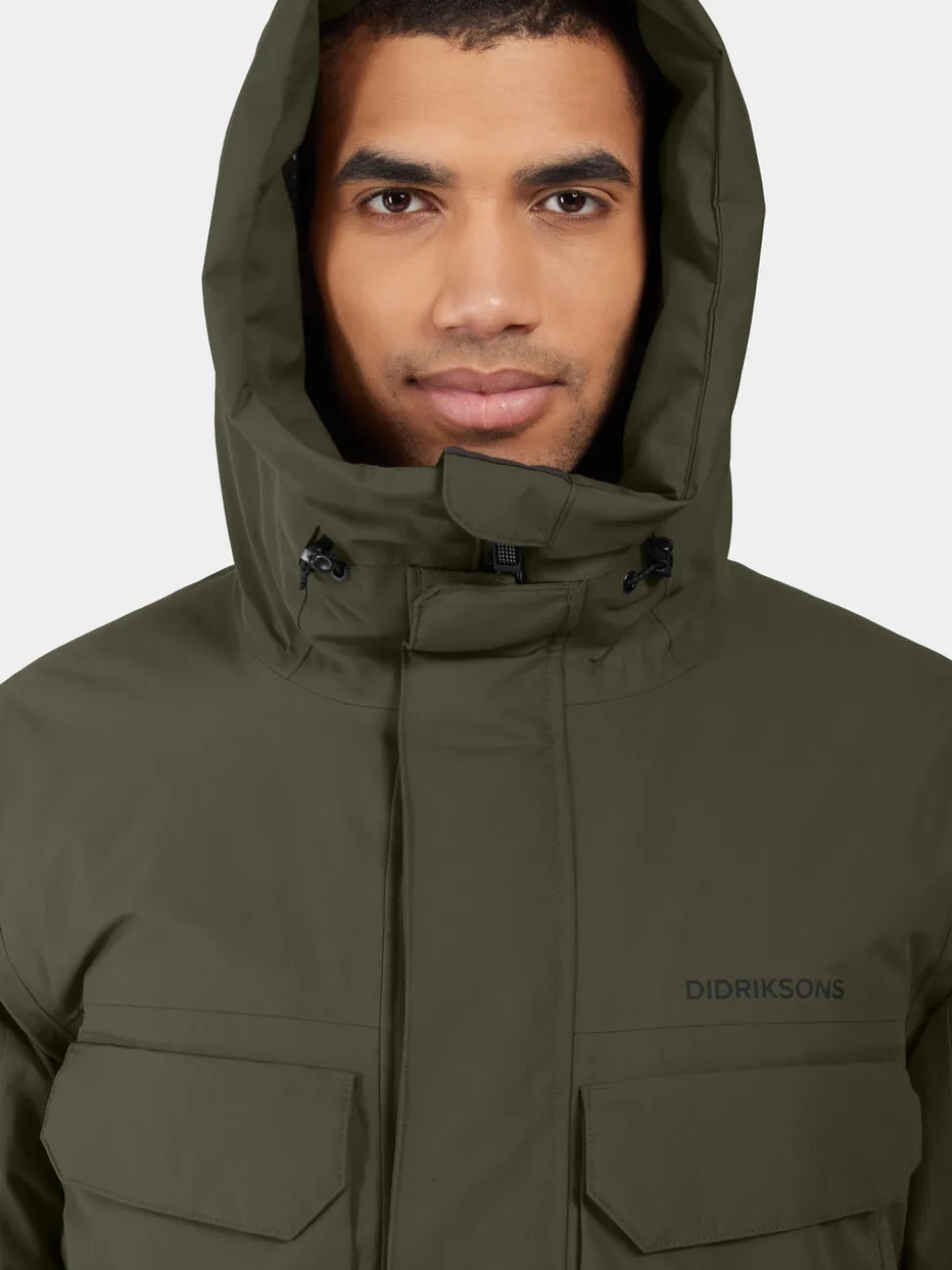 Drew on parka, joka pitää sinut lämpimänä ja tyylikkäänä syksyn ja talven viileinä päivinä. Säädettävä etuvetoketju tarjoaa joustavuutta ja mukavuutta. Drew-parka sisältää vedenkestävät vetoketjut ja useita käteviä taskuja säilytykseen. Heijastavat yksityiskohdat lisäävät näkyvyyttäsi pimeässä. Säädettävien sisähihansuiden ansiosta se pitää sinut lämpimänä ja trendikkäänä joka päivä.