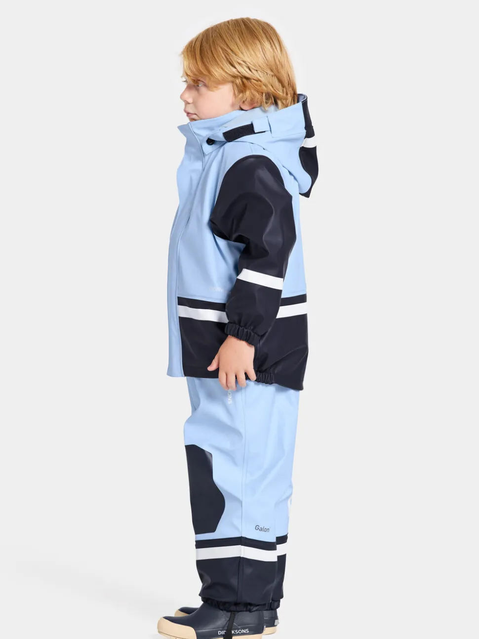 Boardman on toiminnallinen lasten sadesetti, joka sopii täydellisesti ulkoiluun kaikissa sääolosuhteissa. Setti on vuorattu lämmittävällä mikrofleecellä, ja se on valmistettu PVC-vapaasta Galon®-materiaalista, jossa on 100 % vedenpitävät hitsatut saumat. Takissa on irrotettava huppu ja säädettävät henkselit mukavan istuvuuden takaamiseksi.