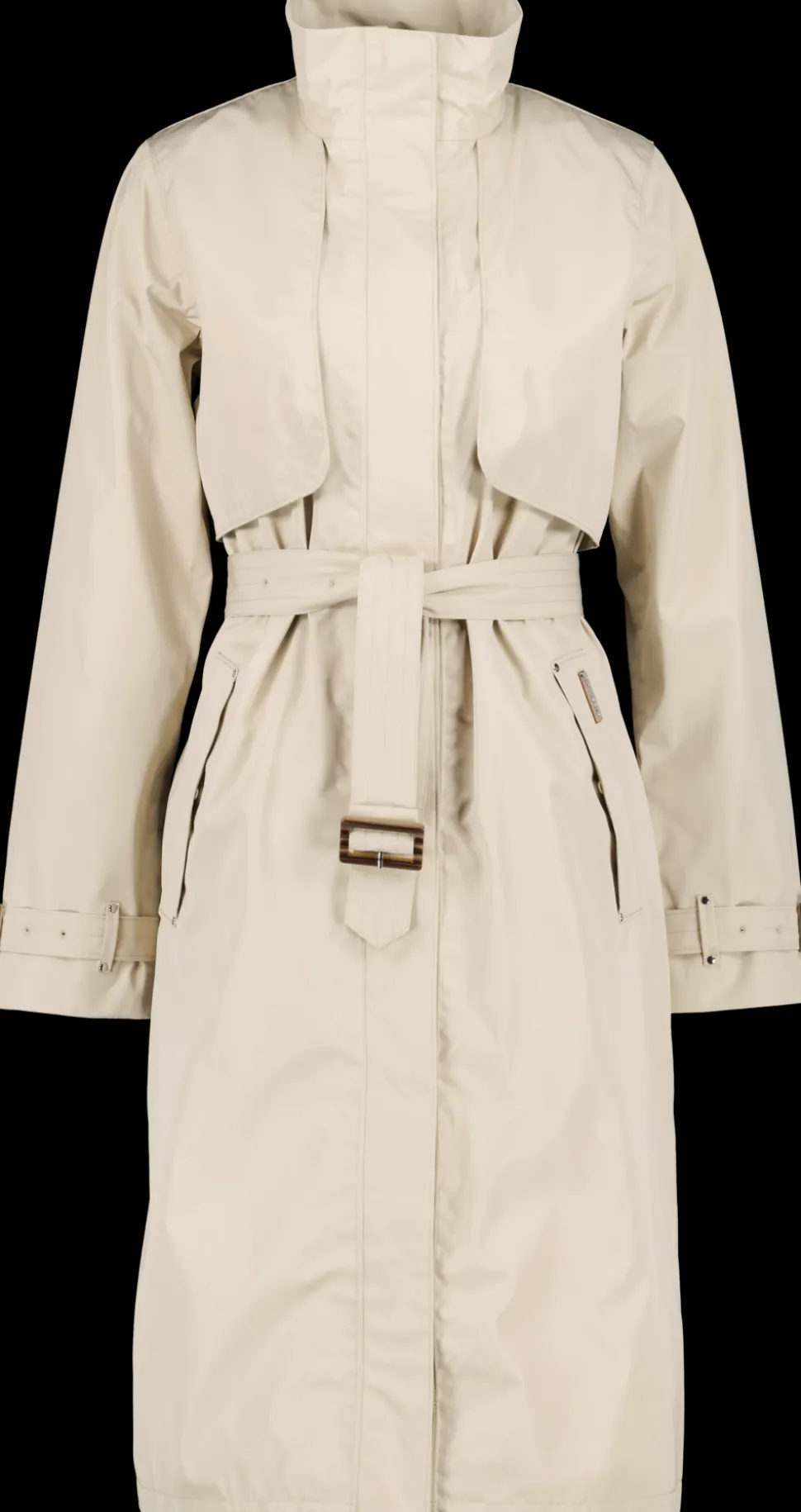 Lova on tyylikäs, täysin tuulen- ja vedenpitävä ja kierrätettävä trenssitakki. Se on valmistettu kierrätetystä polyesteristä. Siinä on sileä ja tyylikäs pinta ja kaikki saumat on teipattu, mikä mahdollistaa 100 % vedenpitävän rakenteen. Normaali istuvuus, vyö vyötäröllä. Piilotettu ilmanvaihtoaukko hartiakappaleen alla. Kaksi painonapilla suljettavaa etutaskua ja kaksi sisätaskua. Kaksisuuntainen vetoketju, jossa suojaava tuulilista ja säädettävä vyötärö. Tämä vaate on tehty tulevaisuutta varten ja se on valmistettu 100 % polyesterikankaista kalvo mukaan lukien. Kun se ei enää sovellu käyttöön, kankaat valmistellaan kierrätettäviksi uuden vaatekappaleen materiaaliksi. PFC-vapaa vedenhylkivyyskäsittely.