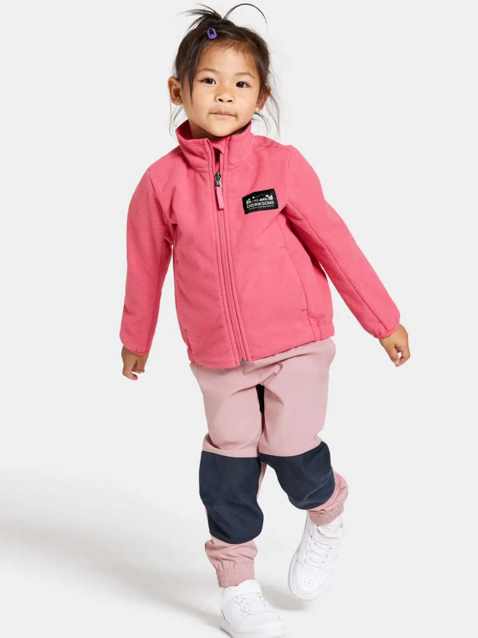 Muskot on tuulenpitävästä fleece-materiaalista valmistettu pehmeä ja mukava lasten takki, joka sopii erinomaisesti ulkoiluun. Takissa on suora istuvuus ja se on suunniteltu pitämään lapset lämpiminä ja suojattuina. Takissa on joustavat hihansuut ja kaulus, jonka sisäpuolella on joustava ribb, mikä lisää mukavuutta.