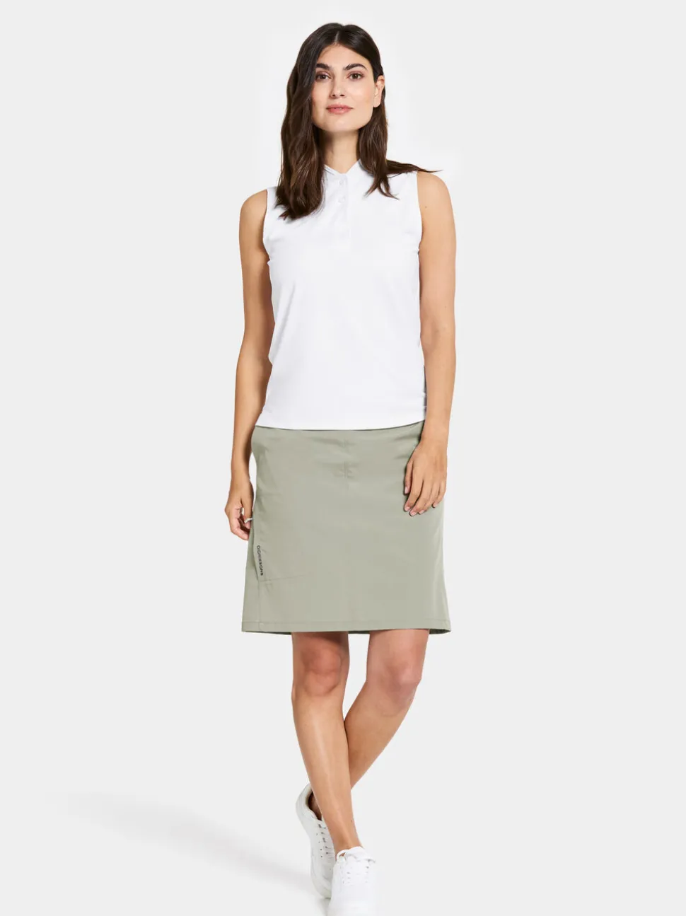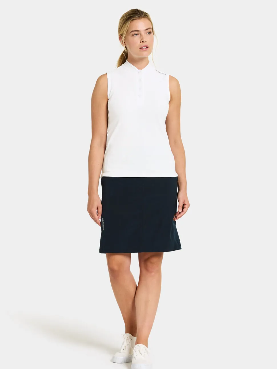 Nikki on klassinen hihaton pikee, jossa yhdistyvät täydellisesti tyyli ja mukavuus. Se on valmistettu pehmeästä ja miellyttävästä kankaasta, jossa on 4-suuntaista stretchiä, ja se antaa imartelevan, vartaloa myötäilevän siluetin. Joustava ribbikaulus ja nappikiinnitys edessä antavat ajattoman ilmeen, joka sopii kaikkiin tilaisuuksiin. Tämä 100-prosenttisesti kierrätyskuiduista valmistettu pikee on kestävä valinta vaatekaappiisi.