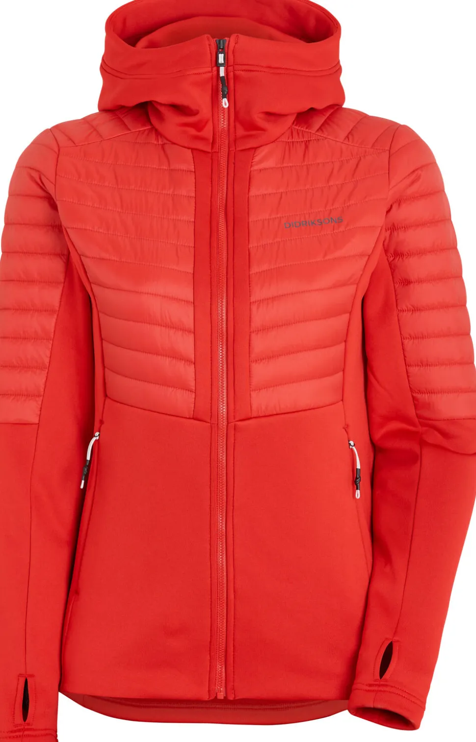 Annema on tyylikäs ja toimiva takki, jossa yhdistyvät kaksi eri materiaalia optimaalisen mukavuuden ja suorituskyvyn saavuttamiseksi. Takissa on imarteleva, vartaloa myötäilevä istuvuus ja ergonominen leikkaus, joka mahdollistaa liikkumisen vapauden. Takki on valmistettu kevyestä, vettähylkivästä ripstop-laatuisesta nylonista ja stretch-fleecestä, jonka harjattu sisäpinta antaa lisälämpöä.