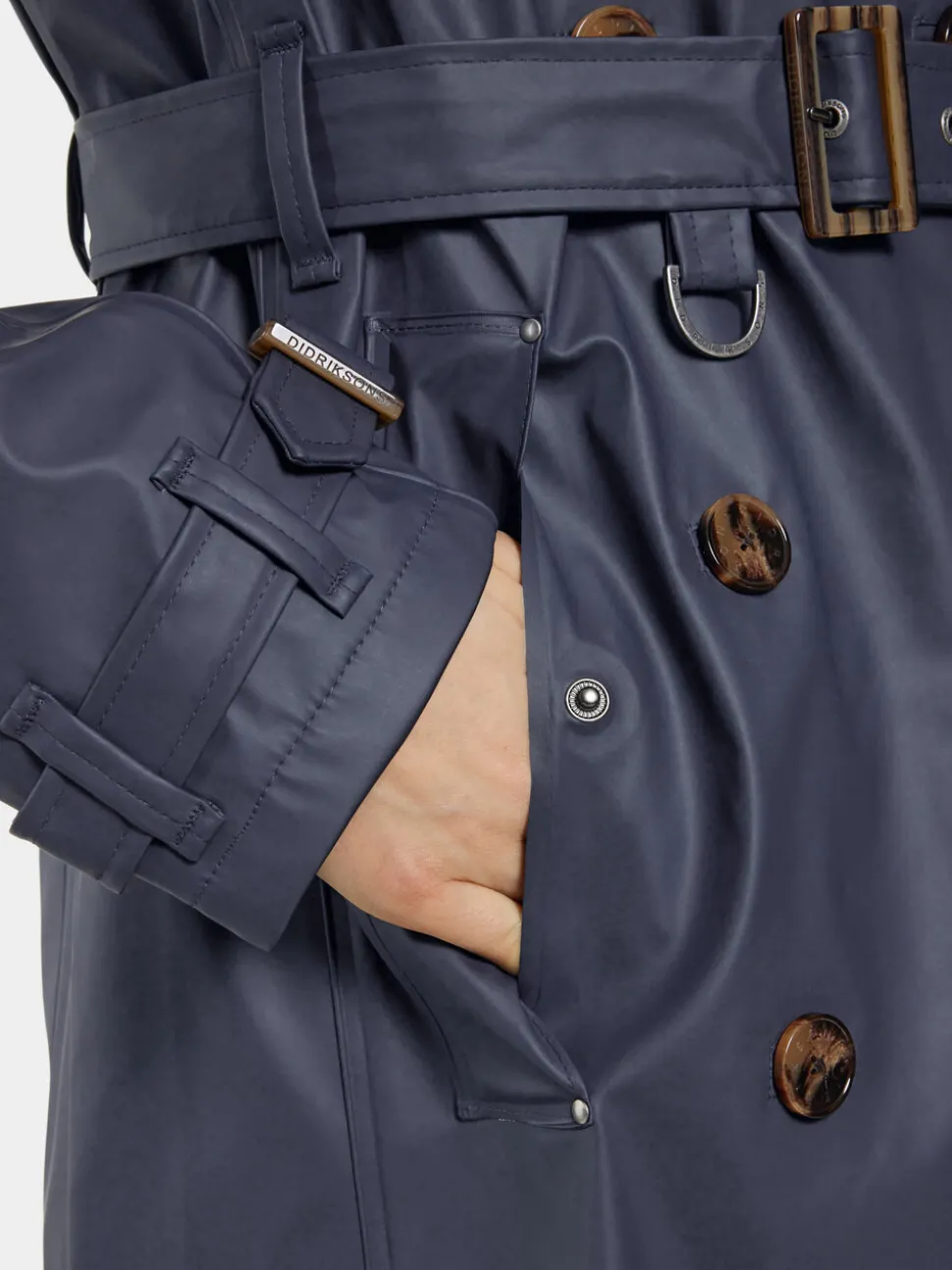 Gry on takki naisille, jotka haluavat pukeutua tyylikkäästi myös sadepäivinä. Tämä on hyvin suunniteltu Galon-materiaalista valmistettu trenssitakki, jossa on kaikki oikeat yksityiskohdat. Veden- ja tuulenpitävässä takissa on hitsatut saumat, jotka antavat lisäsuojaa sääolosuhteilta. Siinä on pehmeä trikoopohjakangas ja ainutlaatuinen painettu vuori. Takissa on kaksi painonapeilla suljettavaa ulkotaskua ja yksi painonapilla suljettava sisätasku. Säädettävät hihatampit ja vyö toimivat hienoina yksityiskohtina.