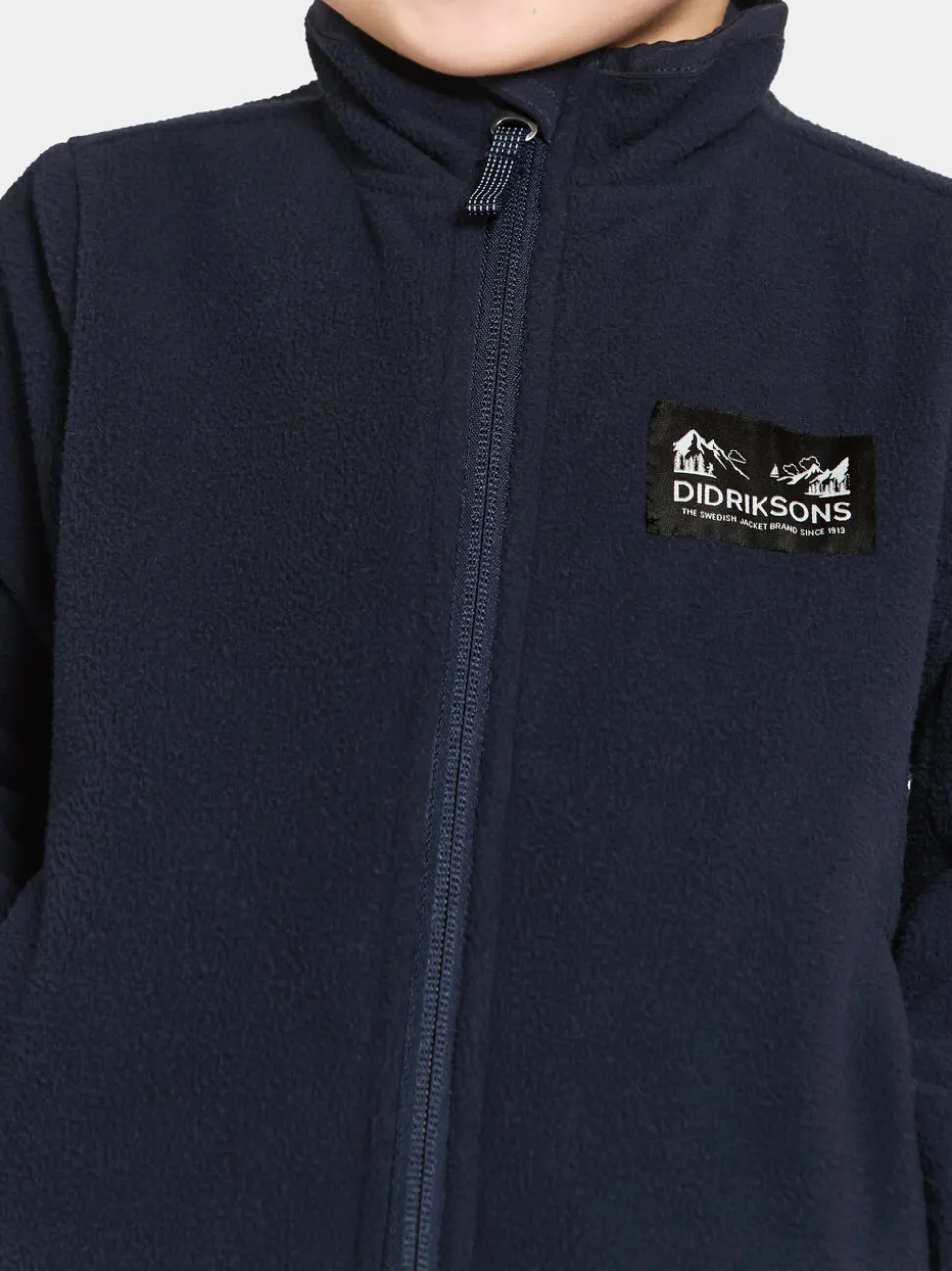 Muskot on tuulenpitävästä fleece-materiaalista valmistettu pehmeä ja mukava lasten takki, joka sopii erinomaisesti ulkoiluun. Takissa on suora istuvuus ja se on suunniteltu pitämään lapset lämpiminä ja suojattuina. Takissa on joustavat hihansuut ja kaulus, jonka sisäpuolella on joustava ribb, mikä lisää mukavuutta.