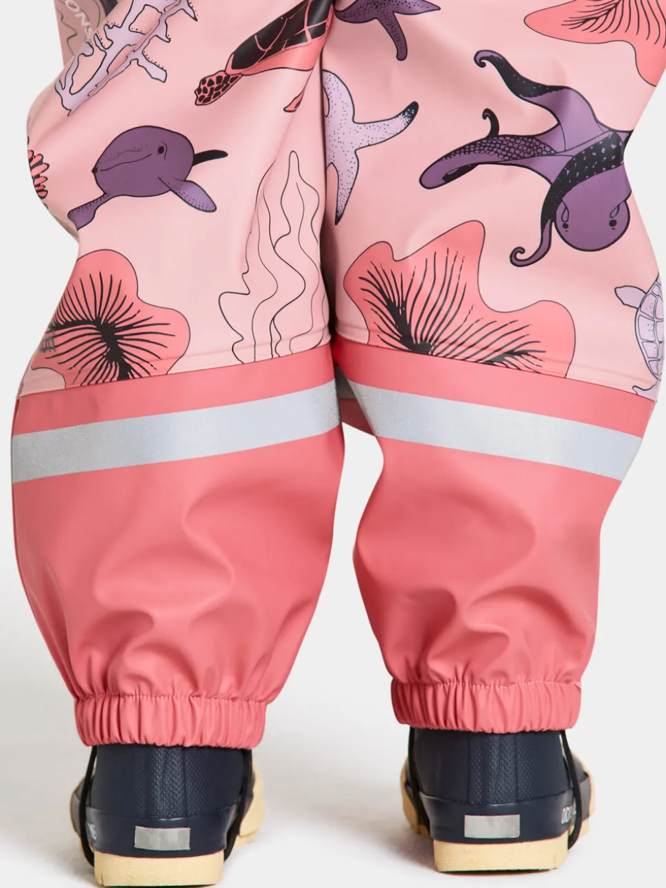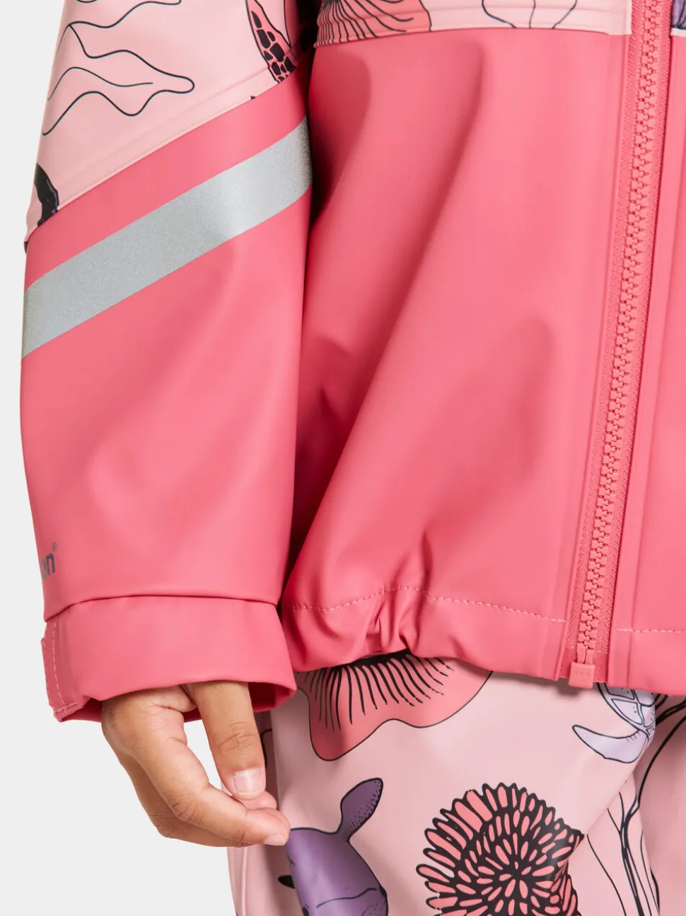 Waterman on toiminnallinen ja vedenpitävä setti lapsille, joka sopii täydellisesti ulkoiluun. Setissä on kausipainatus, ja se on valmistettu PVC-vapaasta Galon®-materiaalista, jossa on 100 % vedenpitävät hitsatut saumat. Takissa on irrotettava huppu, jossa on joustavat sivut turvallisen istuvuuden takaamiseksi, ja säädettävä vyötärö, jossa on kiristysnauha lisämukavuutta varten.