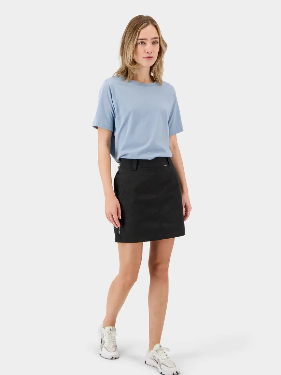 Takana oleva joustava vyötärö takaa joustavan istuvuuden, ja sisäänrakennetut sisäshortsit joustavasta materiaalista tarjoavat lisämukavuutta ja turvallisuutta. Hameessa on PFC-vapaa vettähylkivä pinta, joten se on sekä toimiva että tyylikäs.