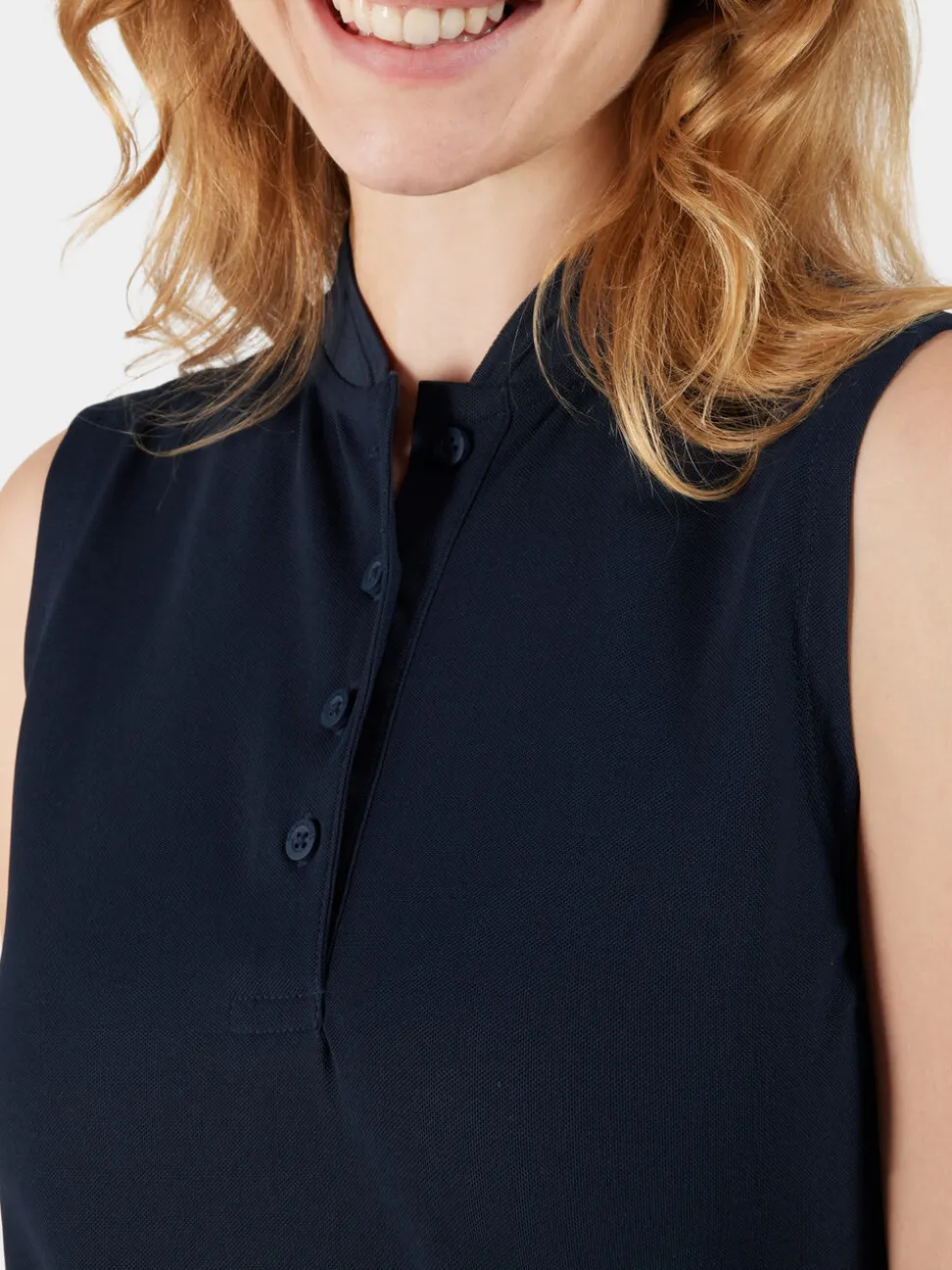 Nikki on klassinen hihaton pikee, jossa yhdistyvät täydellisesti tyyli ja mukavuus. Se on valmistettu pehmeästä ja miellyttävästä kankaasta, jossa on 4-suuntaista stretchiä, ja se antaa imartelevan, vartaloa myötäilevän siluetin. Joustava ribbikaulus ja nappikiinnitys edessä antavat ajattoman ilmeen, joka sopii kaikkiin tilaisuuksiin. Tämä 100-prosenttisesti kierrätyskuiduista valmistettu pikee on kestävä valinta vaatekaappiisi.