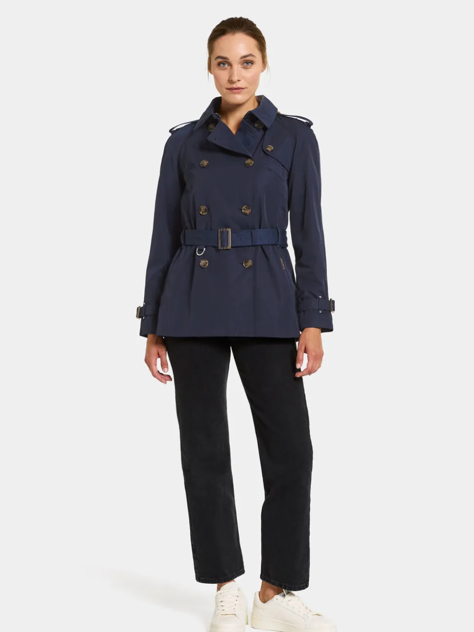 Viktoria on lyhyt trenssitakki, jossa on ylellisiä yksityiskohtia. Se on laadukkaasti valmistettu takki, jossa on eksklusiivisia viimeistelyjä. Säädettävä vyö ja hihansuuremmat. Yhteensä kolme taskua; kaksi ulkopuolista sivutaskua, jotka sulkeutuvat napilla, ja yksi sisätasku napin kanssa. PFC-vapaa vettähylkivä viimeistely.