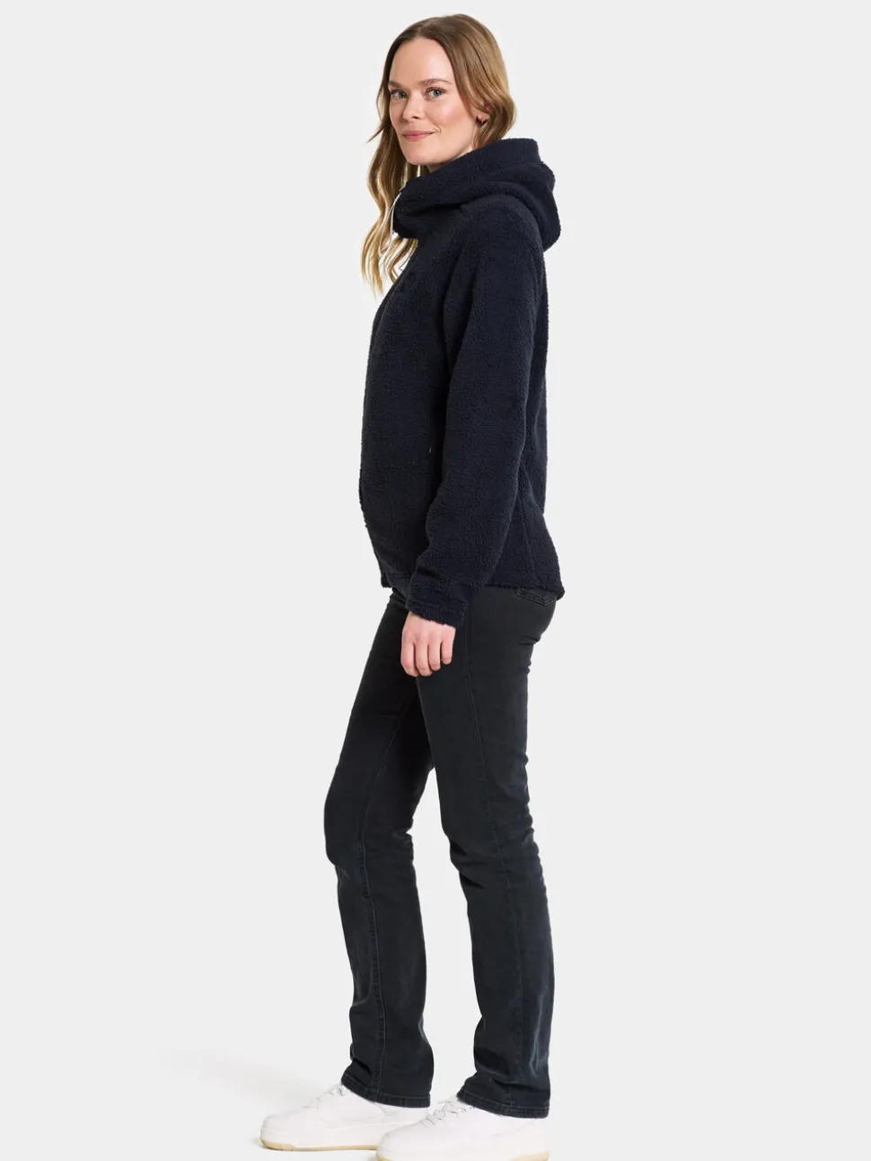Anniken on viihtyisä ja istuva fleecetakki, jossa yhdistyvät tyyli ja mukavuus. Se on valmistettu pehmeästä pilekankaasta, jossa on 4-suuntaista stretchiä, ja se tarjoaa imartelevan istuvuuden ja liikkumisen vapauden. Kiinteä huppu ja ergonominen leikkaus tekevät siitä täydellisen kerrospukeutumiseen, kun taas etuvetoketju ja kätevät vetoketjulliset etutaskut tarjoavat sekä toimivuutta että tyyliä.