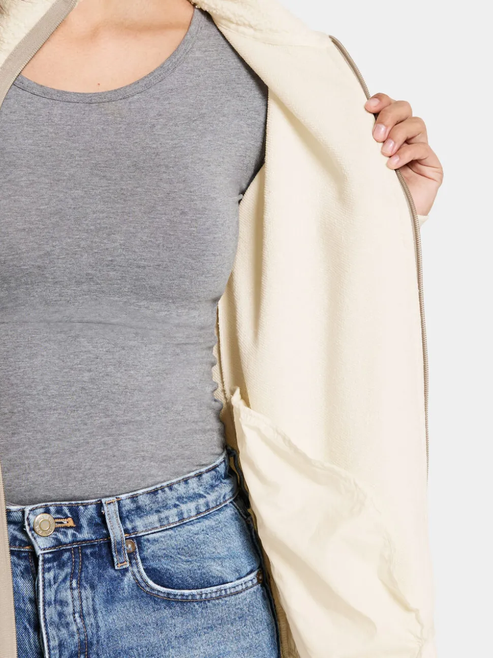 Tola on lämmin ja kodikas fleecetakki pehmeästä pilekankaasta, joka sopii täydellisesti kerrospukeutumiseen. Takissa on muotoiltu helma ja suora istuvuus, joka antaa rennon siluetin. Takissa on joustavat hihansuut ja tavallinen kaulus, joten se on sekä käytännöllinen että mukava. Sivutaskut ja vetoketjukiinnitys edessä tekevät siitä toimivan lisäyksen vaatekaappiisi. Tola on takki, joka antaa sinulle sekä mukavuutta että tyyliä arkeen.