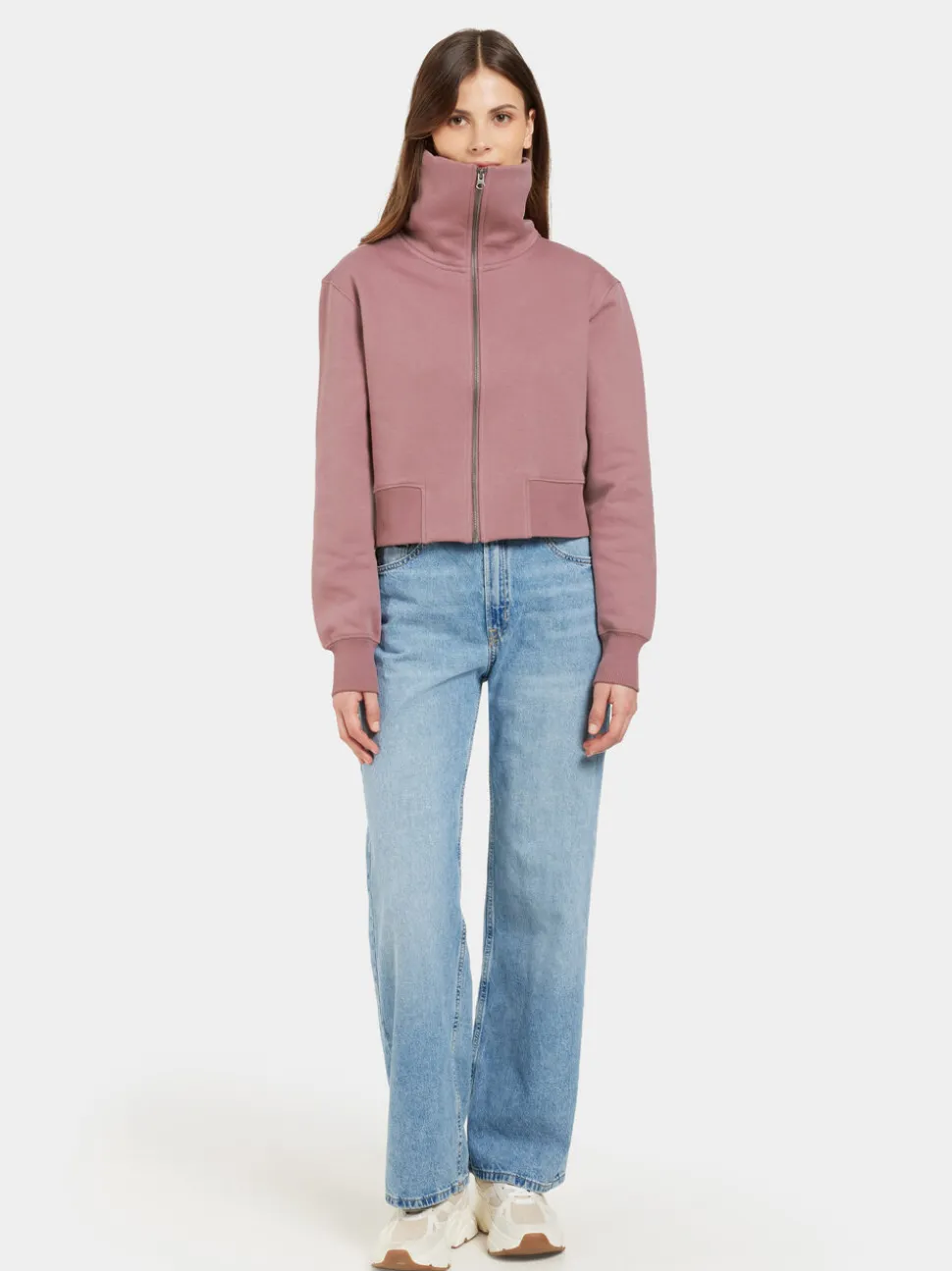 Lovali on pehmeä ja mukava pusero, jossa on korkea, mukava kaulus, joka antaa lisälämpöä ja tyyliä. Se on suoralinjainen ja valmistettu luomupuuvillasta, mikä tekee siitä sekä mukavan että kestävän. Puserossa on joustavat hihansuut ja joustava helma, jotka takaavat miellyttävän istuvuuden, sekä käytännöllinen vetoketjukiinnitys edessä. Täydellinen kerrospukeutumiseen ja vaatekaapin avainvaate jokapäiväiseen käyttöön.