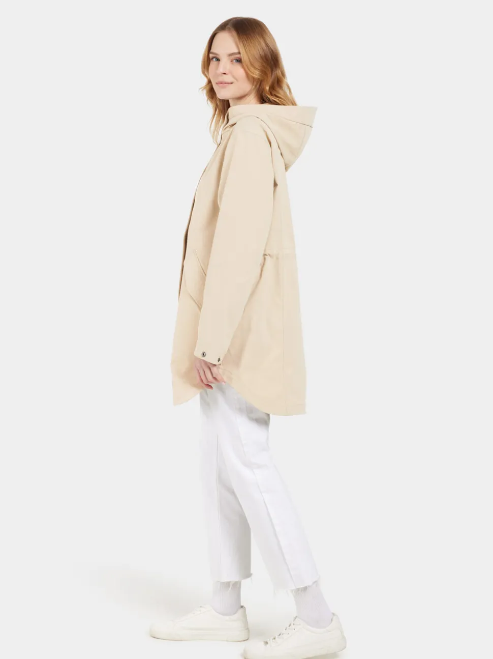 Naomi on pehmeä ja joustava parka, jonka trendikäs siluetti sopii täydellisesti jokapäiväiseen käyttöön. Siinä on säädettävä vyötärö, jonka sisäpuolella on kiristysnauha, joka takaa imartelevan istuvuuden. Parkassa on kiinteä ja säädettävä huppu lisäsuojaa varten sekä vetoketjulliset sivutaskut käytännölliseen säilytykseen. Hihansuita voidaan säätää napeilla yksilöllistä istuvuutta varten.
