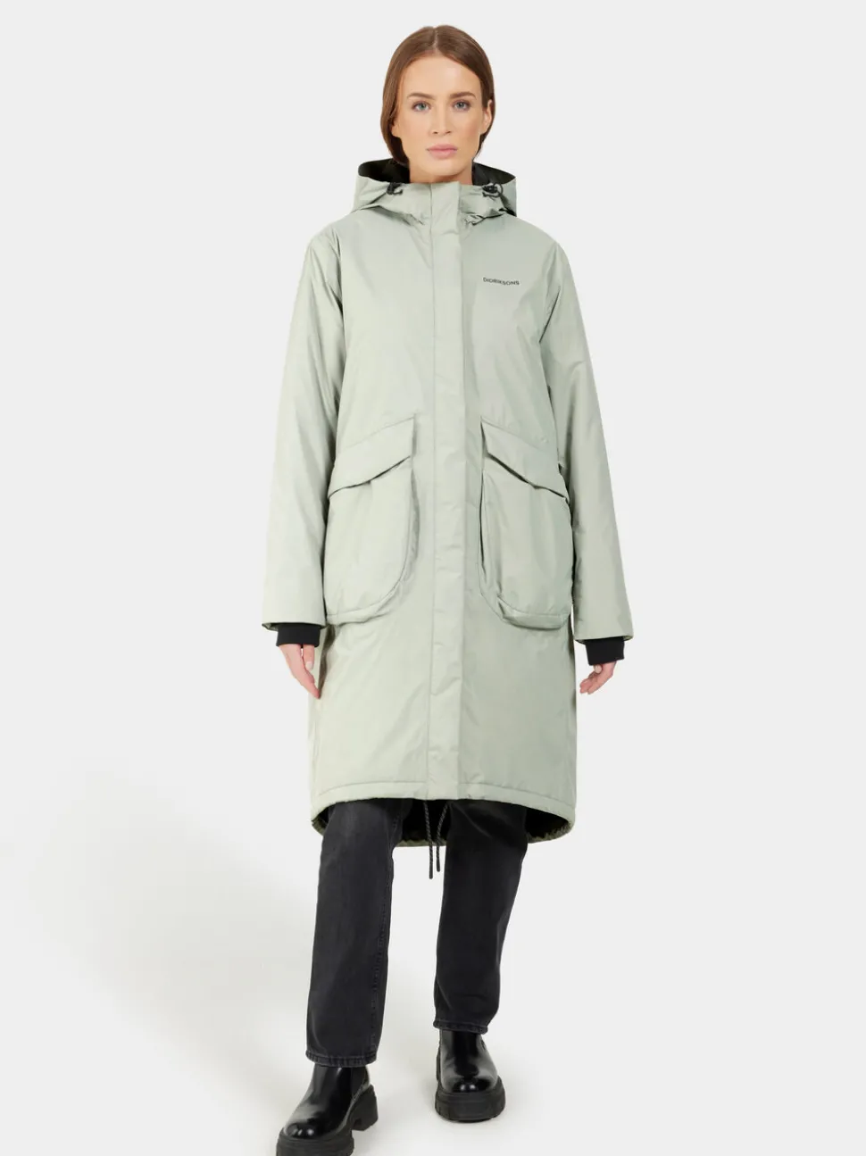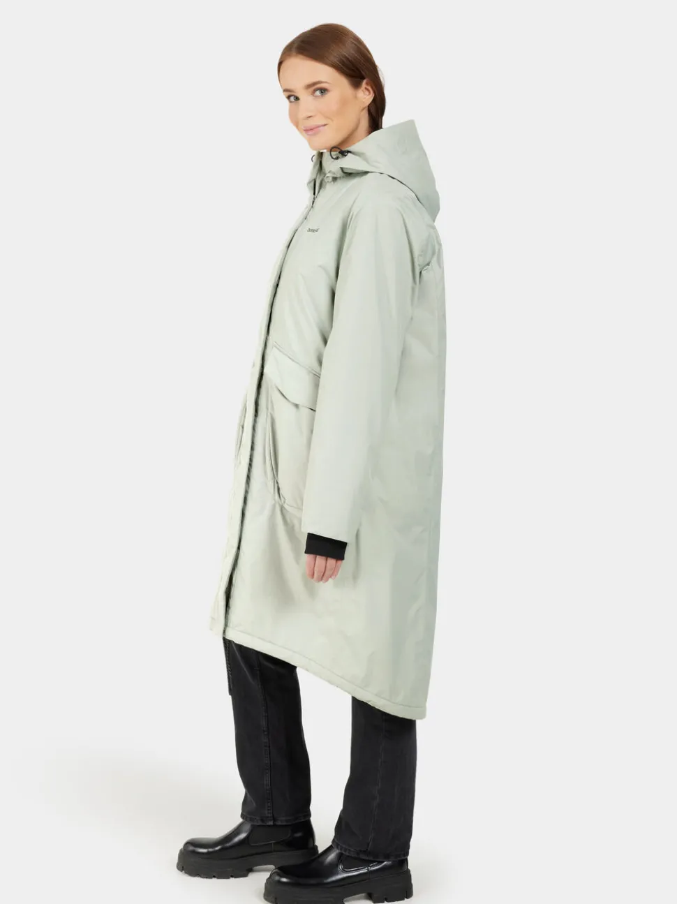 - Kiinteä huppuHuppu on kiinnitetty vaatteeseen, jotta se suojaa aina säältä ja tuulelta.