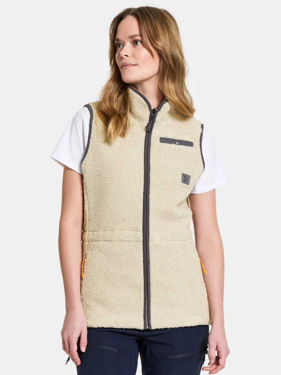 Libra on pehmeä ja lämmin liivi pilekankaasta, jossa on fleecepohja, joka sopii täydellisesti kerrospukeutumiseen. Liivi istuu tiiviisti, mikä imartelee vartaloa ja antaa mukavan tuntuman. Liivissä on joustavat kantit helmassa ja kädentien ympärillä tyylikkään ulkonäön takaamiseksi. Liivissä on vetoketjukiinnitys edessä ja käytännölliset taskut, joissa on napit rinnassa ja edessä, joten se on sekä toimiva että tyylikäs. Säädettävä vyötärö mahdollistaa yksilöllisen istuvuuden ja takana on ripustuslenkki helppoa ripustamista varten.