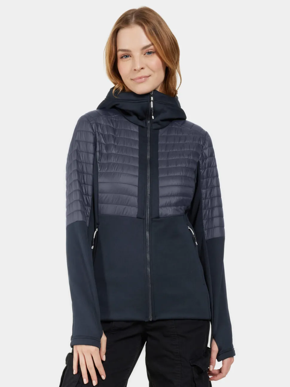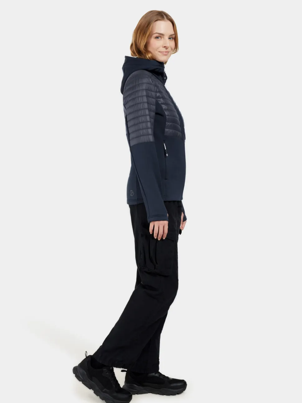 Annema on tyylikäs ja toimiva takki, jossa yhdistyvät kaksi eri materiaalia optimaalisen mukavuuden ja suorituskyvyn saavuttamiseksi. Takissa on imarteleva, vartaloa myötäilevä istuvuus ja ergonominen leikkaus, joka mahdollistaa liikkumisen vapauden. Takki on valmistettu kevyestä, vettähylkivästä ripstop-laatuisesta nylonista ja stretch-fleecestä, jonka harjattu sisäpinta antaa lisälämpöä.