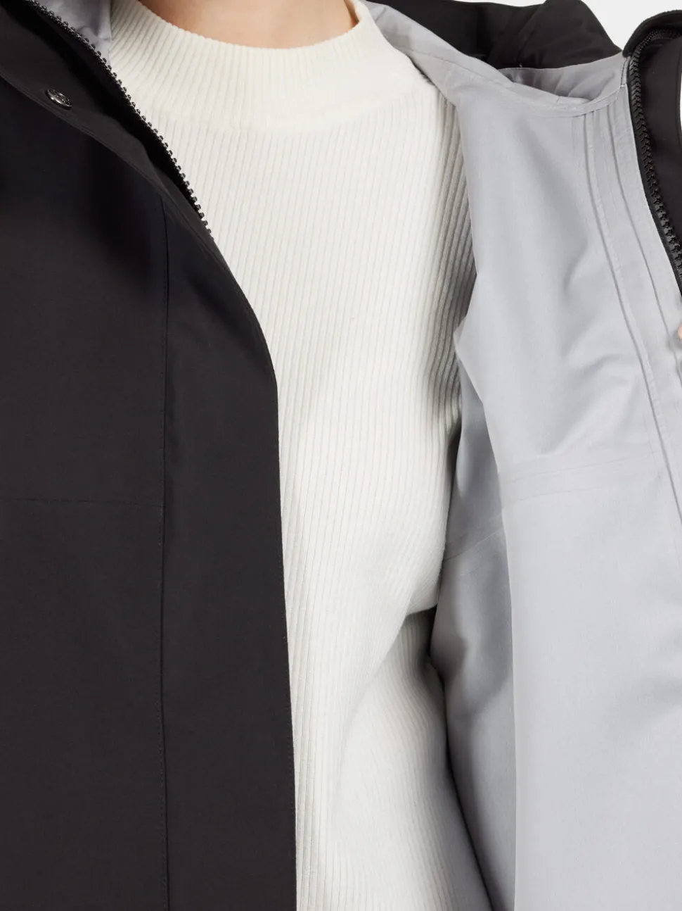 - Kiinteä huppuHuppu on kiinnitetty vaatteeseen, jotta se suojaa aina säältä ja tuulelta.