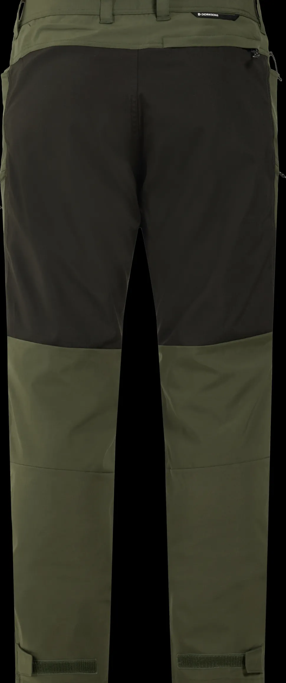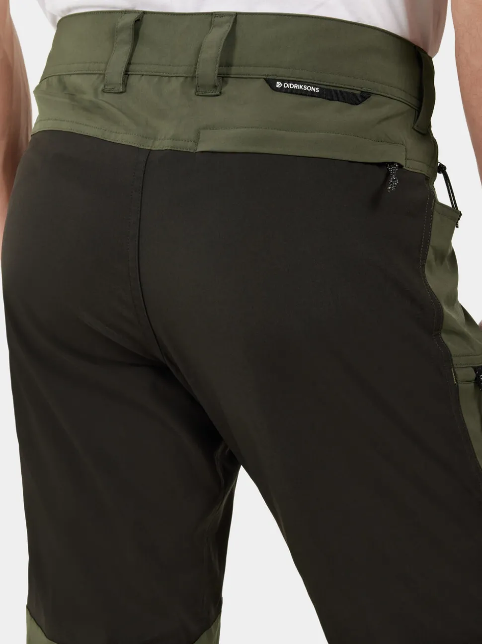 Säärien sisäpuolen saumat on siirretty eteenpäin hankautumisen välttämiseksi, ja lahkeiden päitä voi säätää tarranauhalla. Housuissa on käytännölliset taskut, mukaan lukien takatasku ja puhelintasku yhden ulkotaskun sisällä. Housuissa on myös vyölenkit ja vetoketjullinen sepalus.
