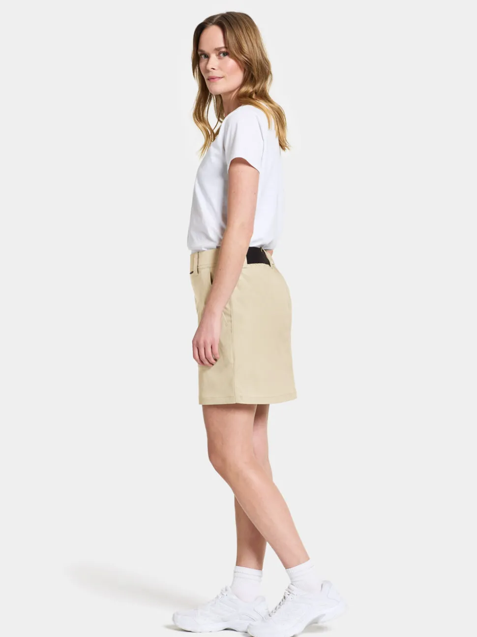 Takana oleva joustava vyötärö takaa joustavan istuvuuden, ja sisäänrakennetut sisäshortsit joustavasta materiaalista tarjoavat lisämukavuutta ja turvallisuutta. Hameessa on PFC-vapaa vettähylkivä pinta, joten se on sekä toimiva että tyylikäs.
